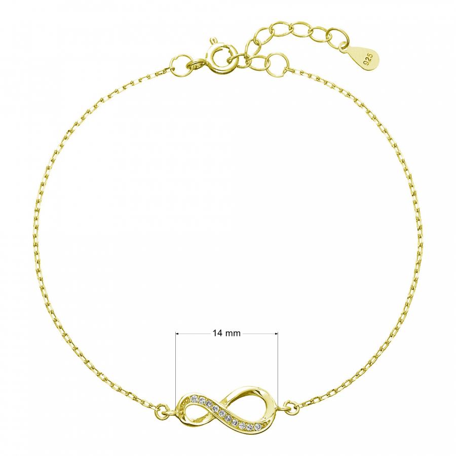 Parametre pozláteného strieborného náramku so zirkónmi nekonečno 13009.1