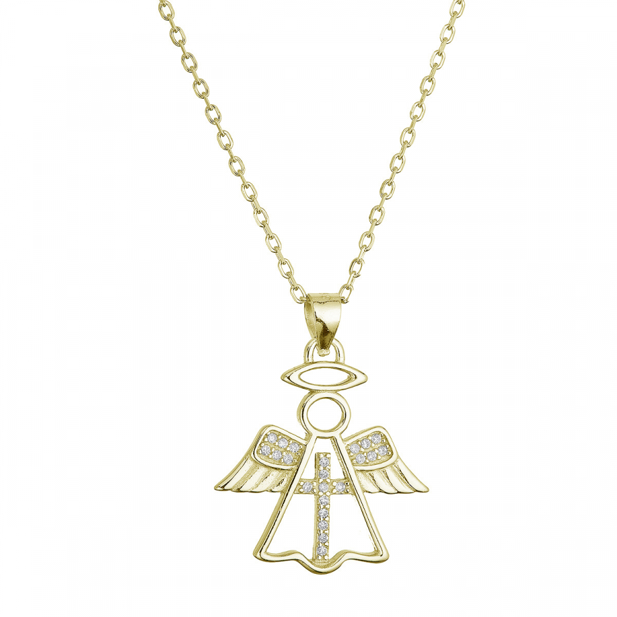 Pozlátený strieborný náhrdelník anjel s krížikom 12123.1