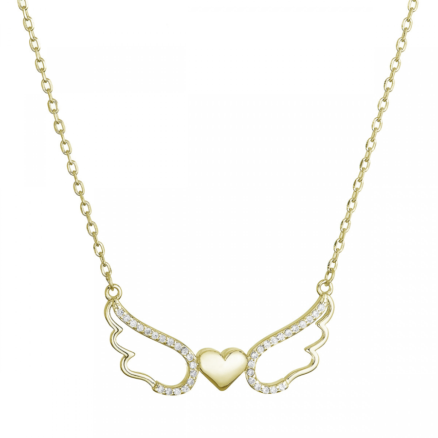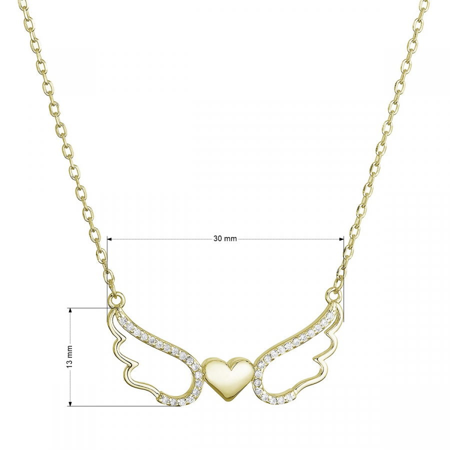 Pozlátený strieborný náhrdelník anjelské krídla so srdiečkom 12136.1