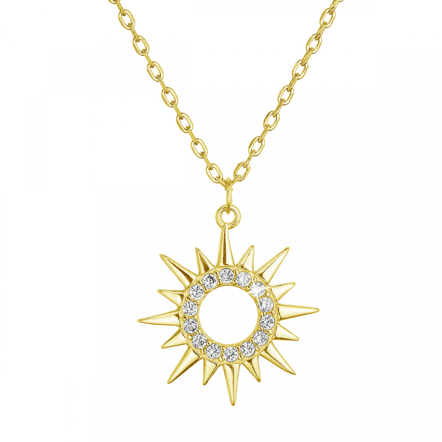 Pozlátený strieborný náhrdelník slnka so zirkónmi 12115.1