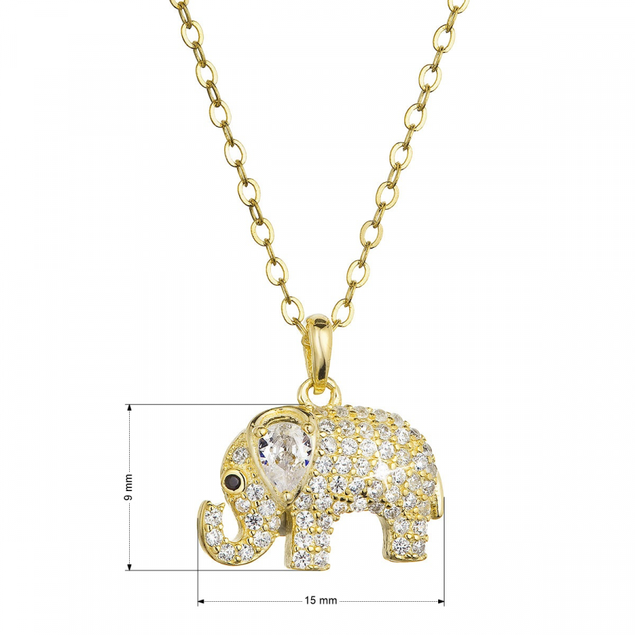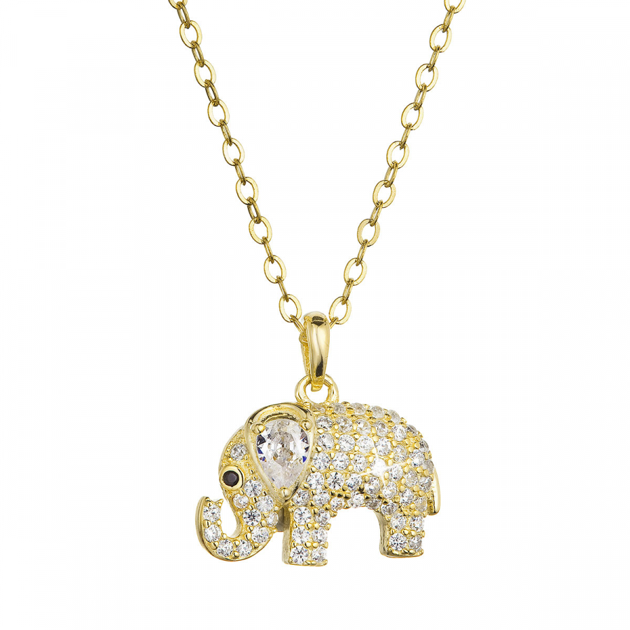 Pozlátený strieborný náhrdelník slon s bielymi zirkónmi 12060.1