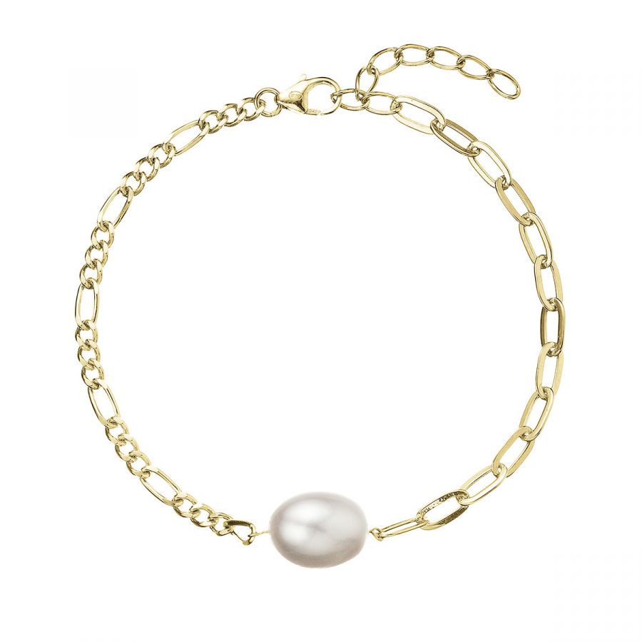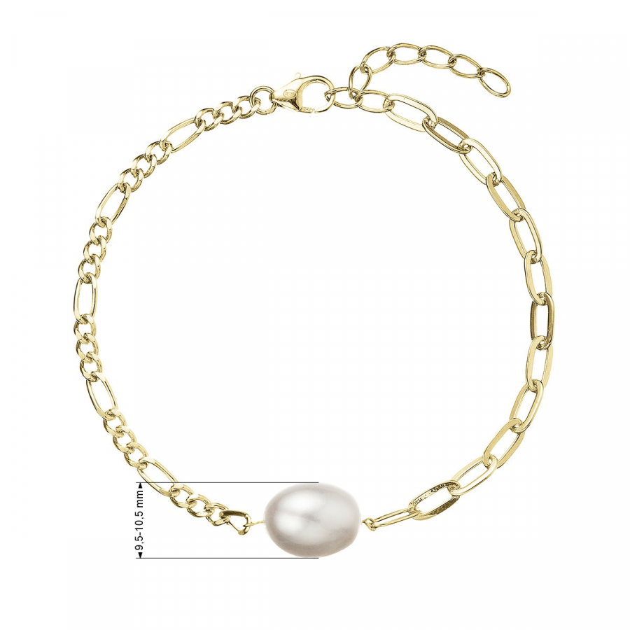 Pozlátený strieborný náramok retiazka s očkami a jednou oválnou perlou 23026.1