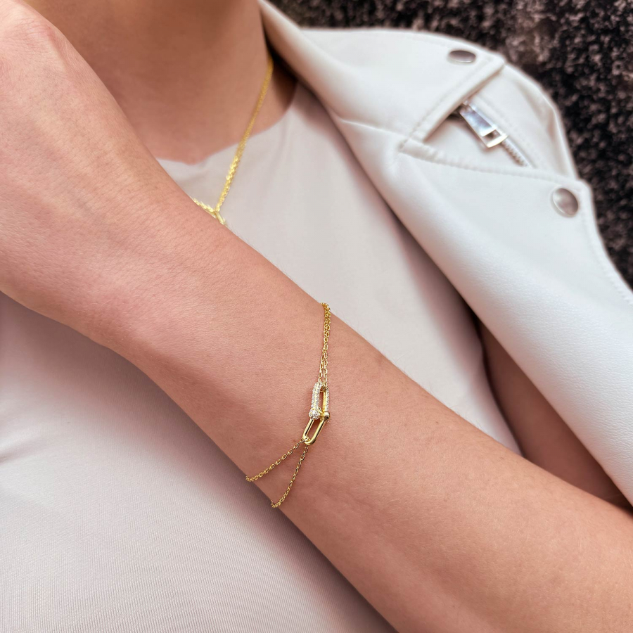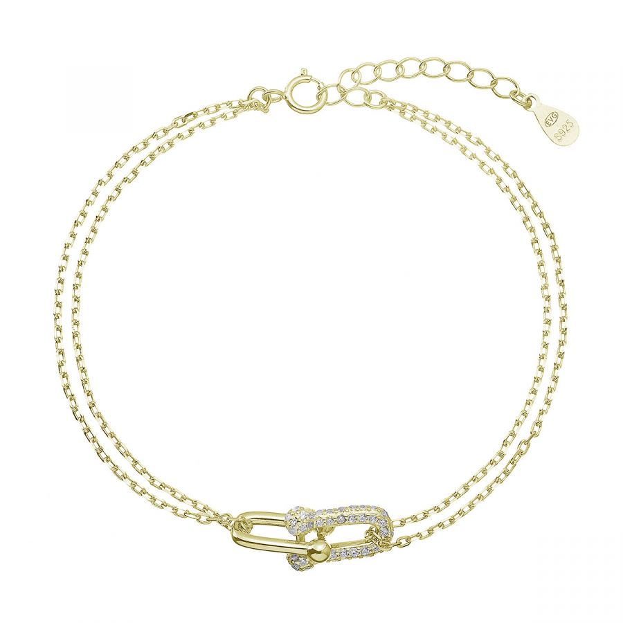 Pozlátený strieborný náramok s elegantným uzlom a zirkónmi 13085.1