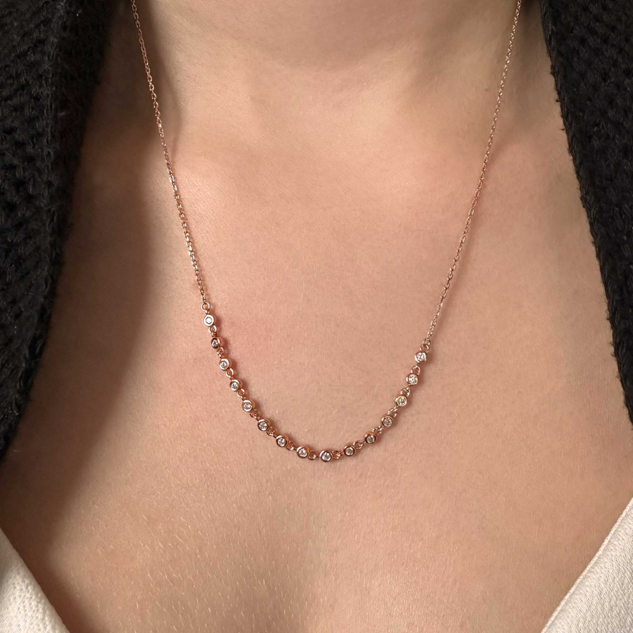 Náhrdelník so zirkónmi je vyrobený z pozláteného rose gold striebra rýdzosti 925/1000 . Keďže šperk neobsahuje žiadny prídavok niklu , môžu ich bez obáv nosiť aj alergici.