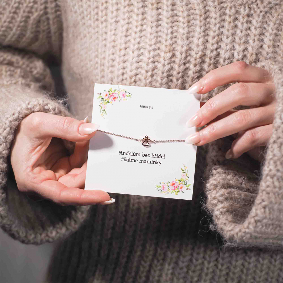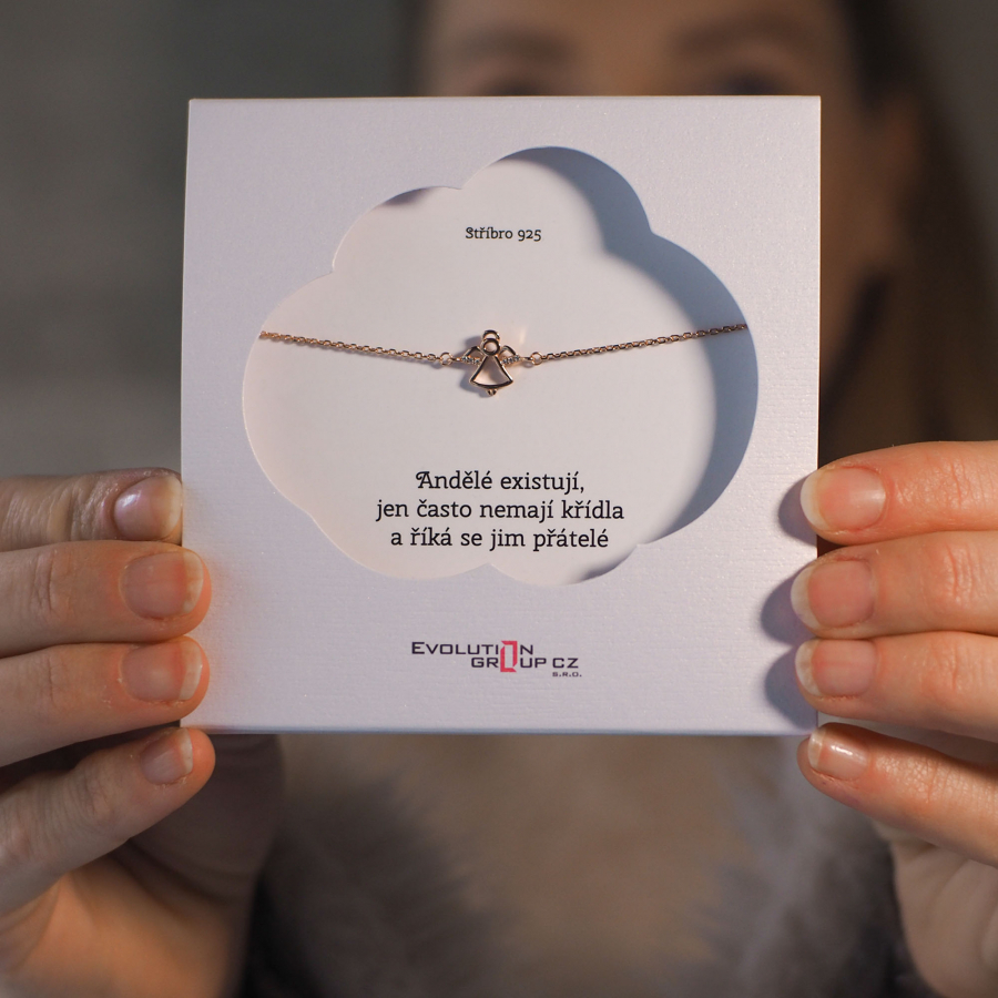 Symbolický darček pre kamarátku, sestru alebo mamičku, ktorá je Vaším strážnym anjelom. Náramok v tvare anjela. Na krídlach sa nachádzajú žiarivé zirkóny bielej farby.