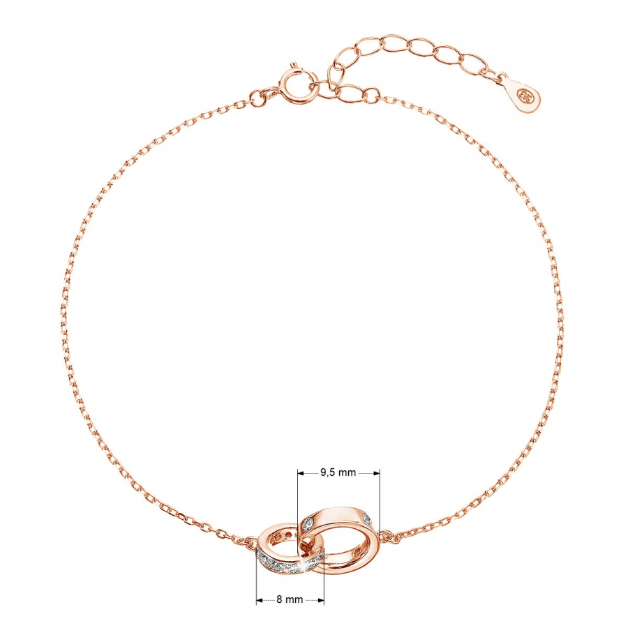 Náramok 13032.1 z dvoch spojených krúžkov zdobený zirkónmi po ich obvode je vyrobený z Rose Gold striebra rýdzosti 925/1000. Keďže šperk neobsahuje žiadny prídavok niklu , môžu ho bez obáv nosiť aj alergici.