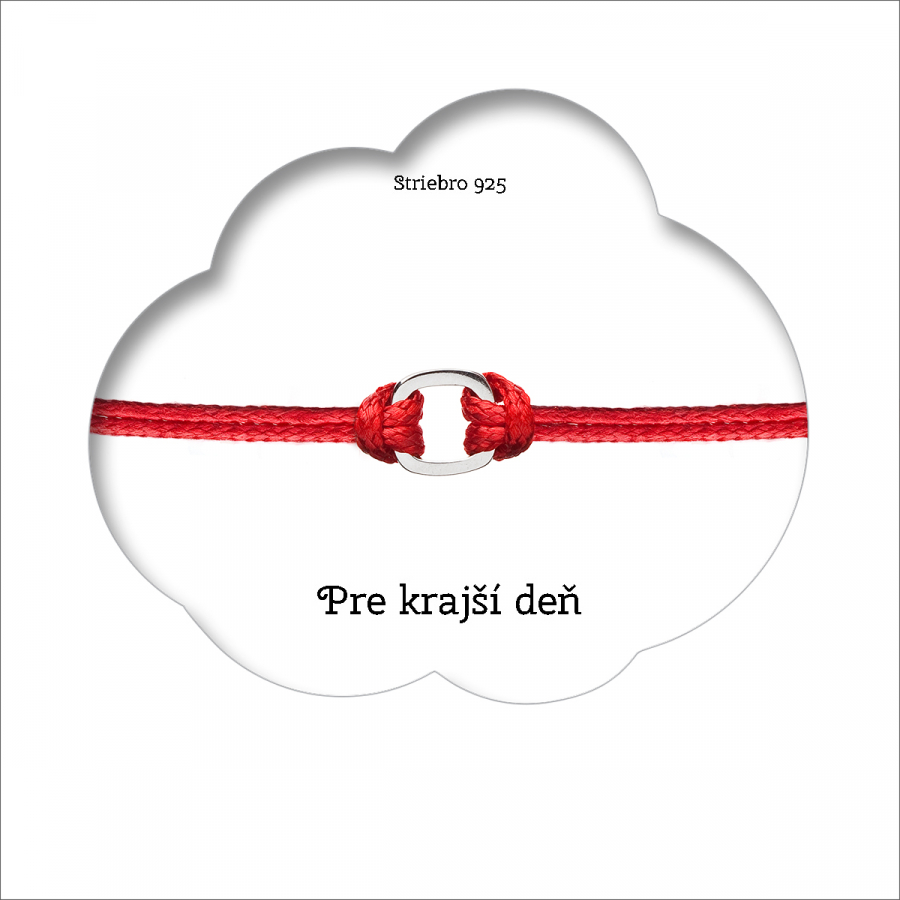 Darčekový set obsahuje moderný červený textilný náramok so strieborným doplnkom , ktorý je zavesený na darčekovej karte s nádherným prianím „Pre krajší deň“ .