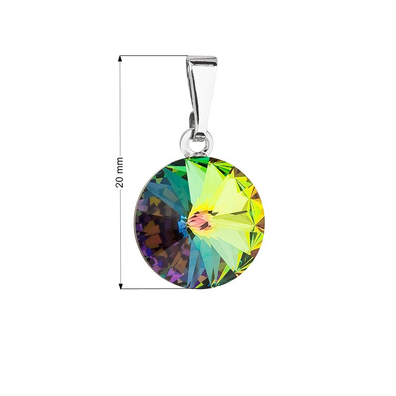 Prívesok je zdobený okrúhlym Swarovski kryštálom so zelenými odleskami . Bižutérny prívesok sa hodí na vašu obľúbenú retiazku. Šperk vyrábame úplne bez prímesi niklu, je vhodným doplnkom aj pre alergikov.