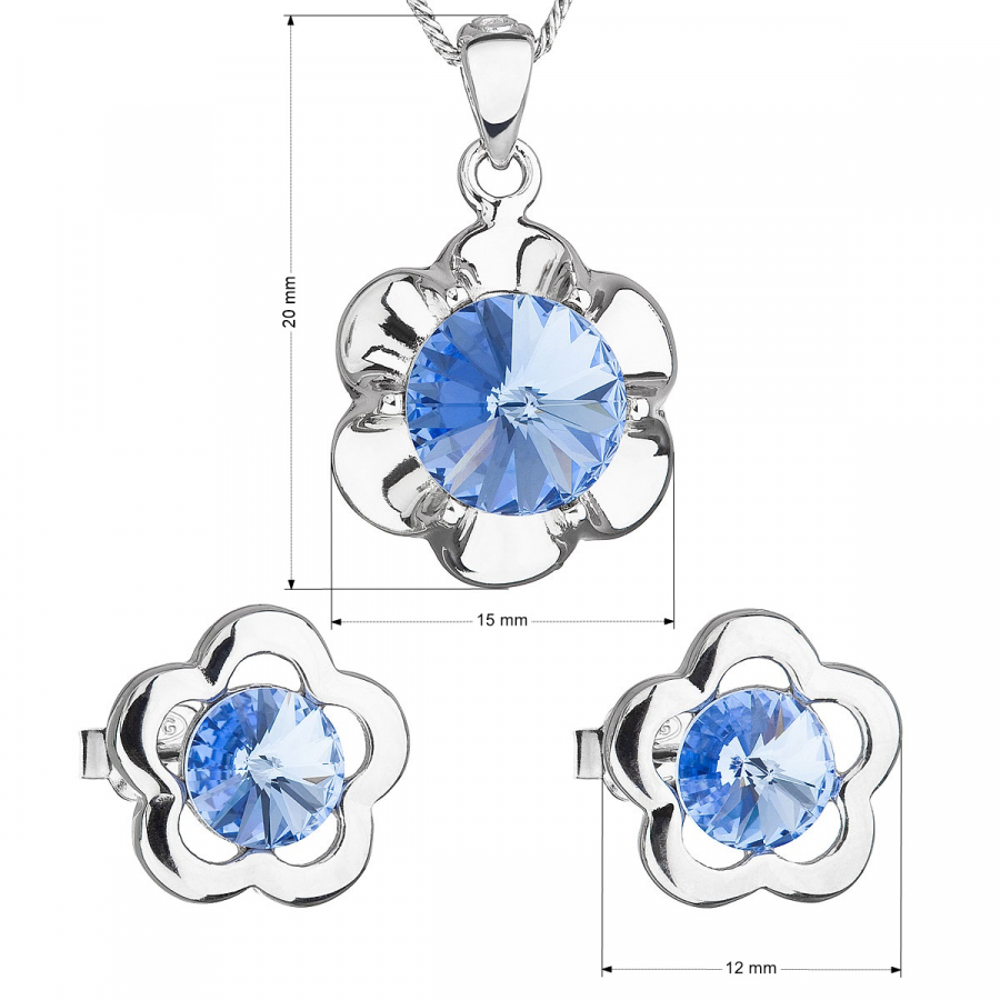 Parametre sady šperkov s kryštálmi Swarovski náušnice, retiazka a prívesok modrá kytička 39173.3
