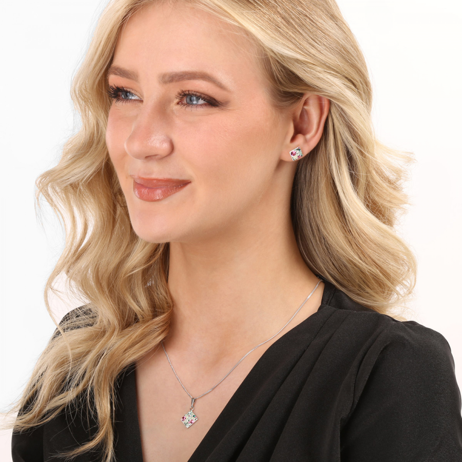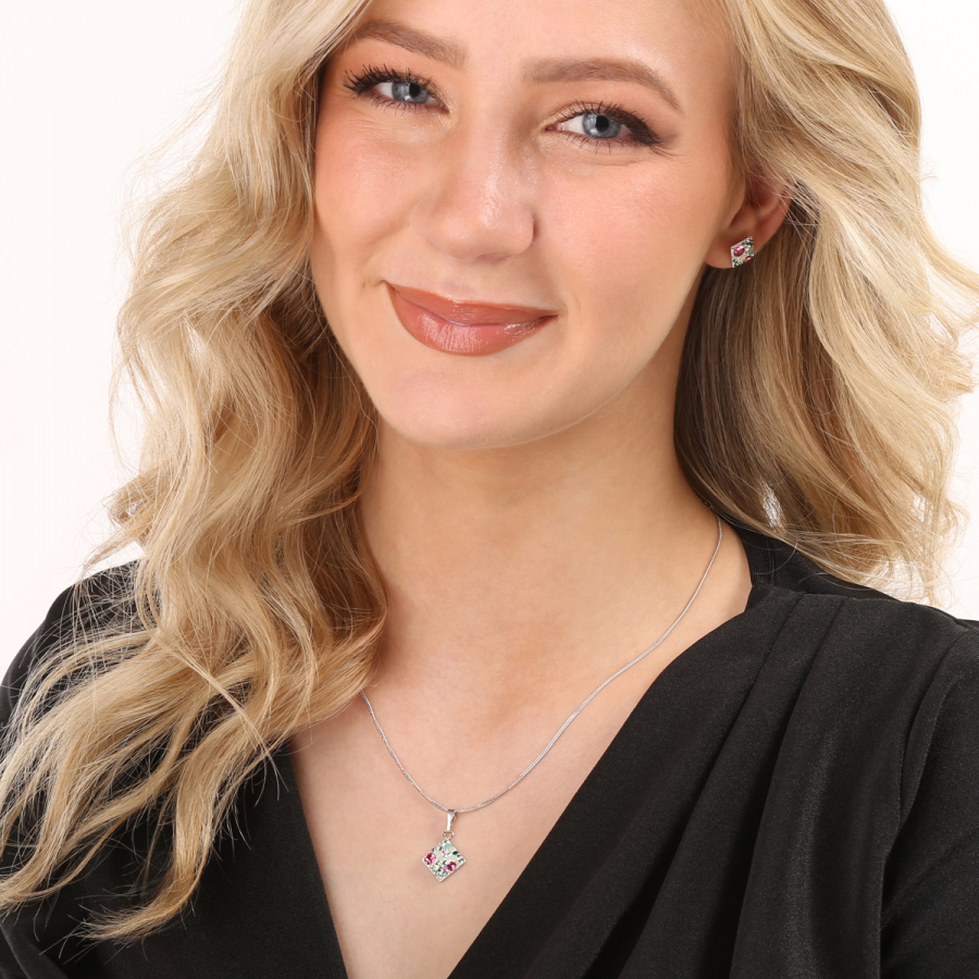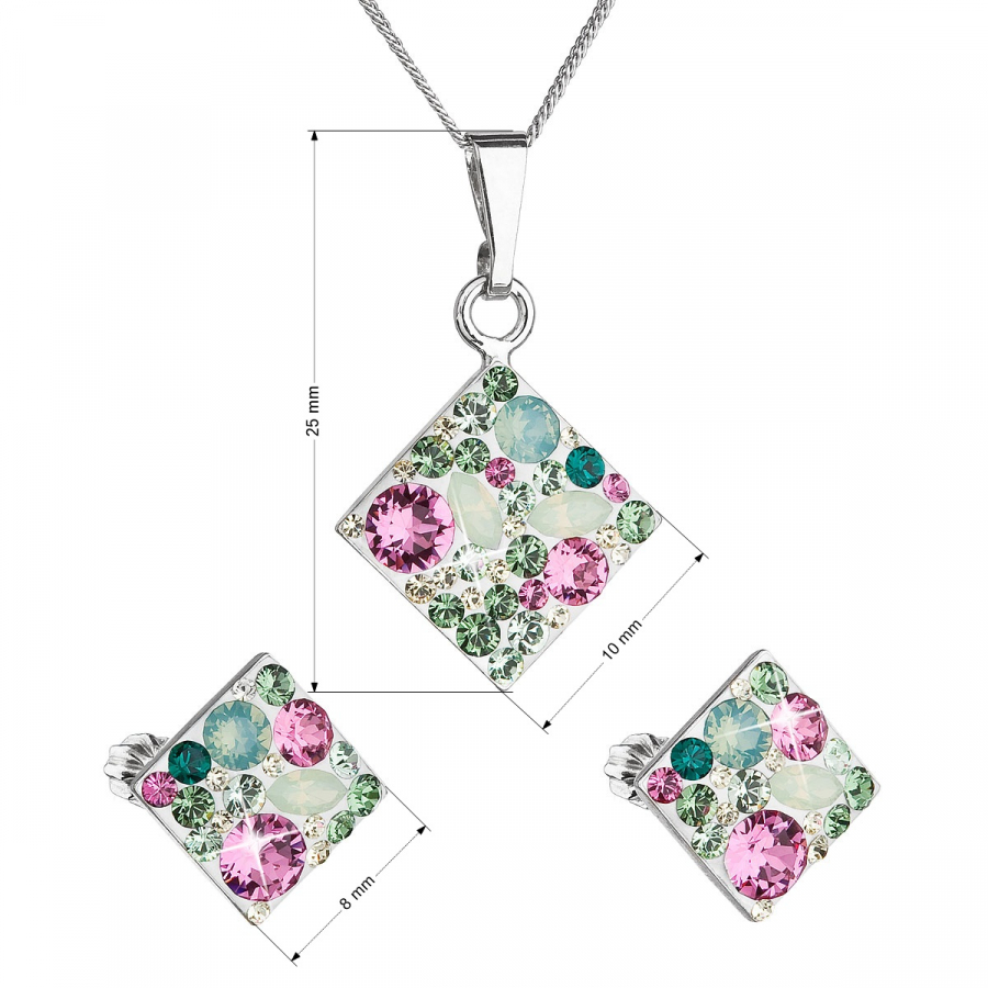 Sada šperkov 39126.3 chrysolite obsahuje náušnice kôstky a retiazku s príveskom. Šperky sú v tvare kosoštvorca a sú vyrobené zo striebra rýdzosti 925/1000, ktoré prešlo povrchovou úpravou ródiom. Ródium chráni šperk proti sčerneniu, zožltnutiu i poškriabaniu. Prívesok aj náušnice sú bohato zdobené trblietavými Swarovski kryštálmi v rôznych farbách. Náušnice majú zapínanie na balónik. Keďže šperky neobsahujú žiadny prídavok niklu , môžu ich bez obáv nosiť aj alergici.