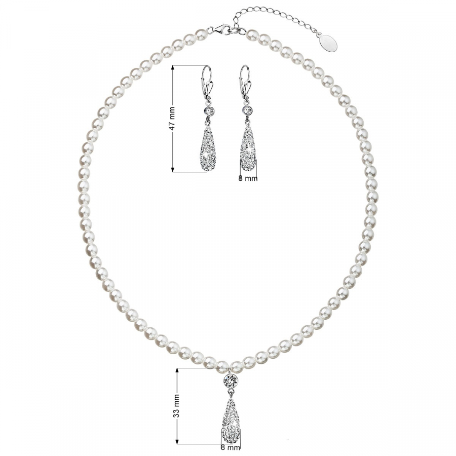 Parametre sady šperkov s kryštálmi Swarovski náušnice a prívesok bielej perly slza 39121.1