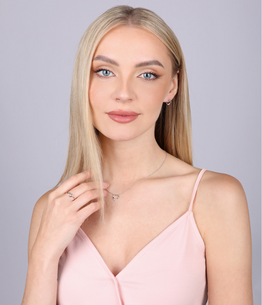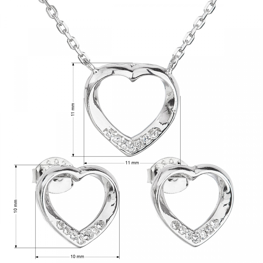 Sada šperkov 19019.1 obsahuje srdiečkové náušnice typu kôstky a prívesok s retiazkou v rovnakom prevedení ako náušnice. Šperky sú vyrobené zo striebra o rýdzosti 925/1000 s povrchovou úpravou ródiom. Ródium bráni sčerneniu, zožltnutiu a poškriabaniu šperku.