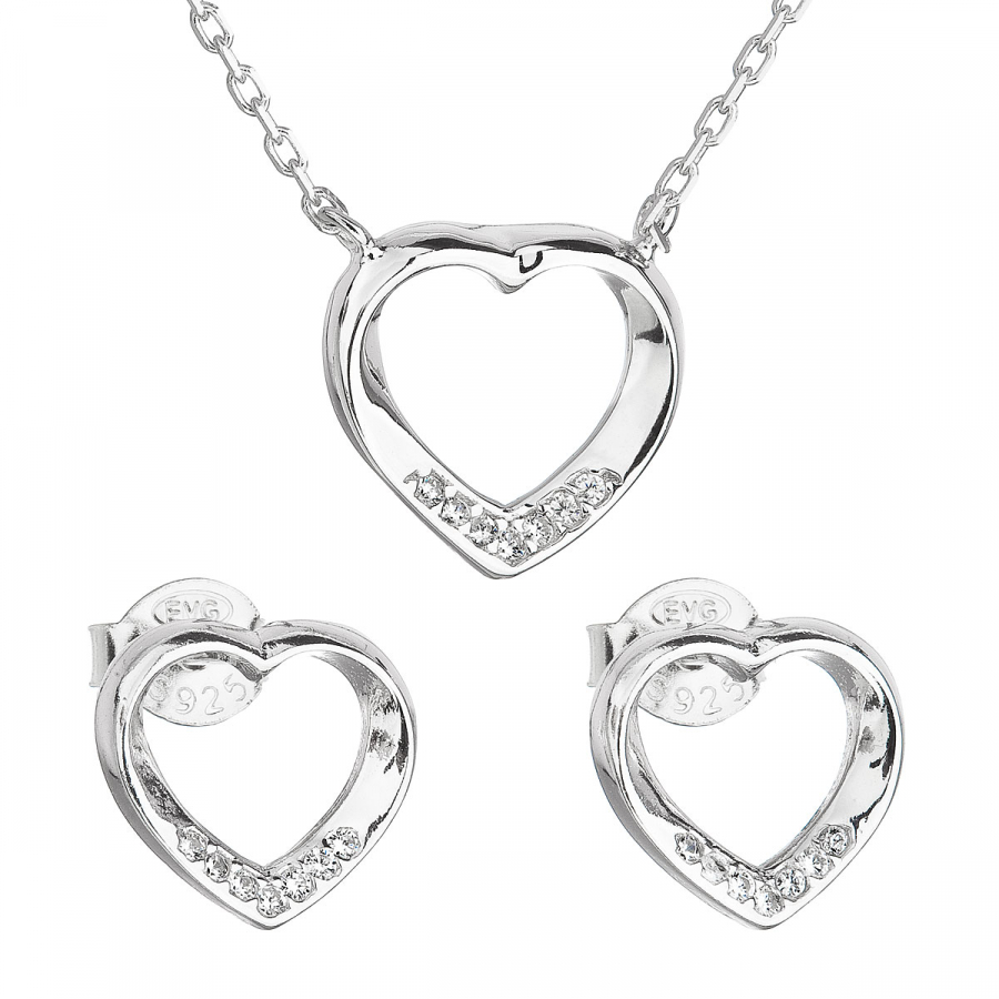 Sada šperkov so zirkónom náušnice a náhrdelník biele srdce 19019.1