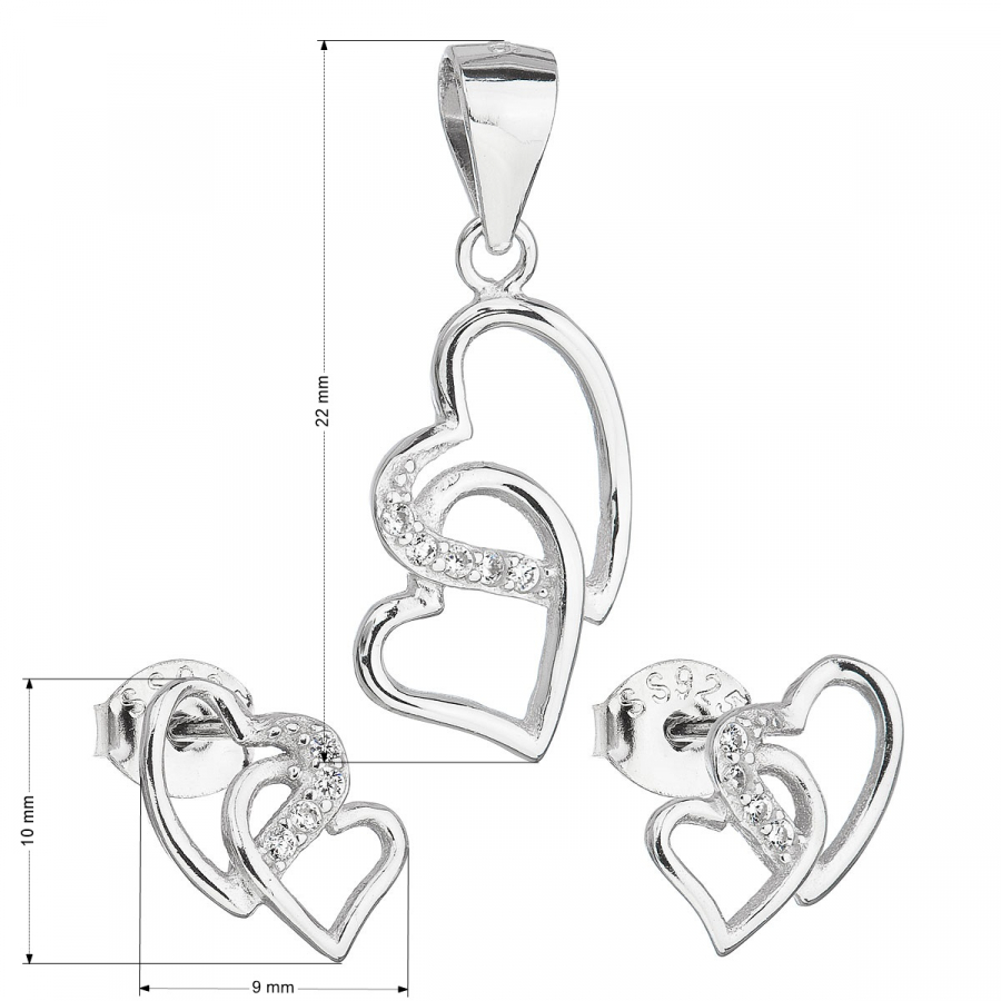 Parametre sady šperkov so zirkónom náušnice a prívesok biele srdce 19015.1