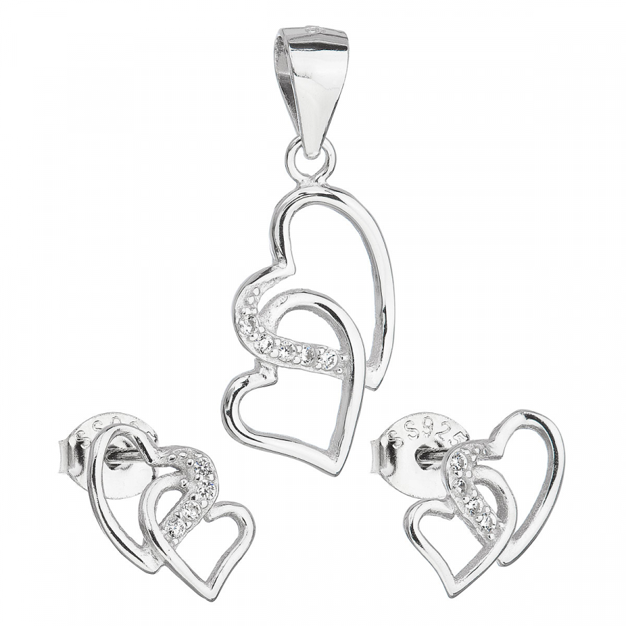 Sada šperkov so zirkónom náušnice a prívesok biele srdce 19015.1
