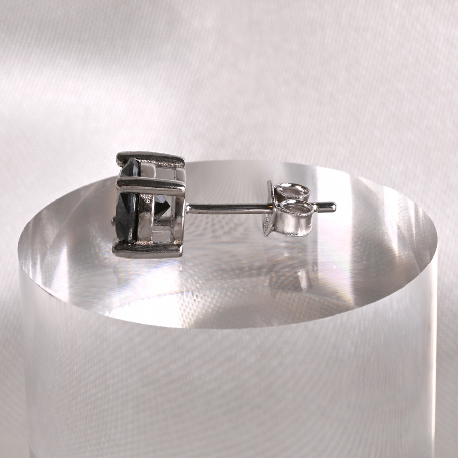 Srdcom náušnice je dokonale brúsený okrúhly moissanit v hlbokej, podmanivej čiernej farbe . Na rozdiel od svojho číreho náprotivku neodráža svetlo oslnivým leskom, ale ponúka sofistikovaný, sklený lesk, ktorý priťahuje pozornosť svojou hĺbkou a jedinečnosťou.