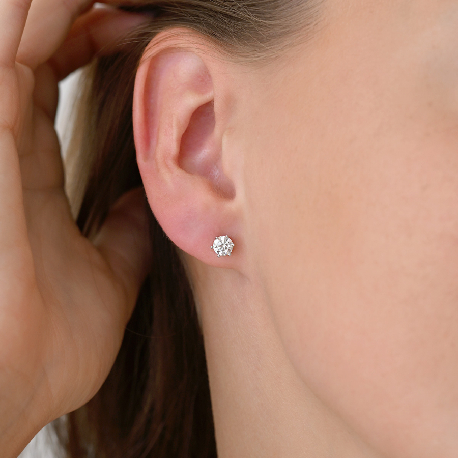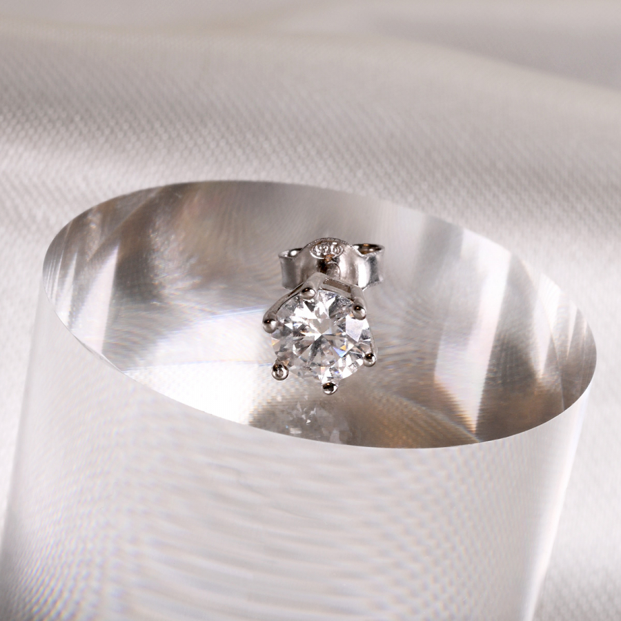 Jedna elegantná jemná moderná náušnica so žiarivým moissanitom s priemerom 5 mm je stelesnením jednoduchosti, ktorá neprehliadnuteľne žiari. Jej čistý dizajn a pohodlné zapínanie na puzete ju predurčuje na nosenie každý deň aj v druhej alebo tretej dierke.