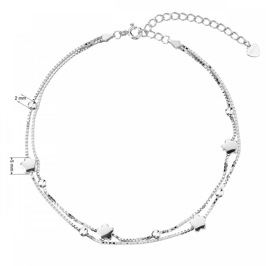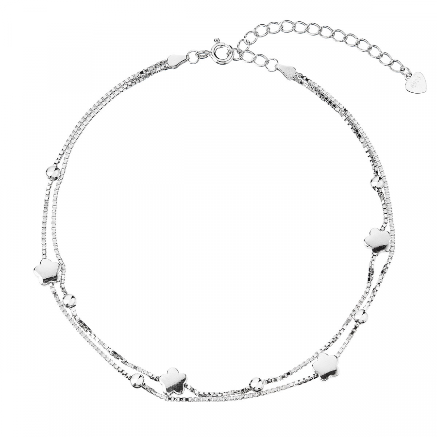 Jemná strieborná retiazka na nohu pre dokonalý vzhľad vašich nôh 16005.1, po obvode zdobená decentným vzorom v tvare kvietkov a guličiek , je ideálna v letných mesiacoch, ale využijete ju aj pre plesovú sezónu.
