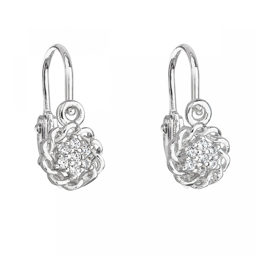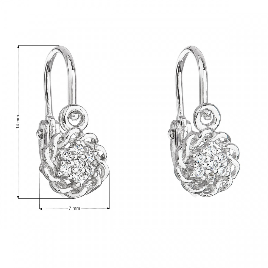 Parametre strieborných detských visiacich náušníc so zirkónom biela kvietka 11176.1