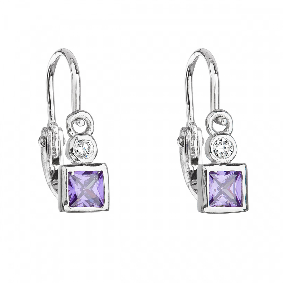 Strieborné detské náušnice visiace so zirkónom fialová kocka 11172.3