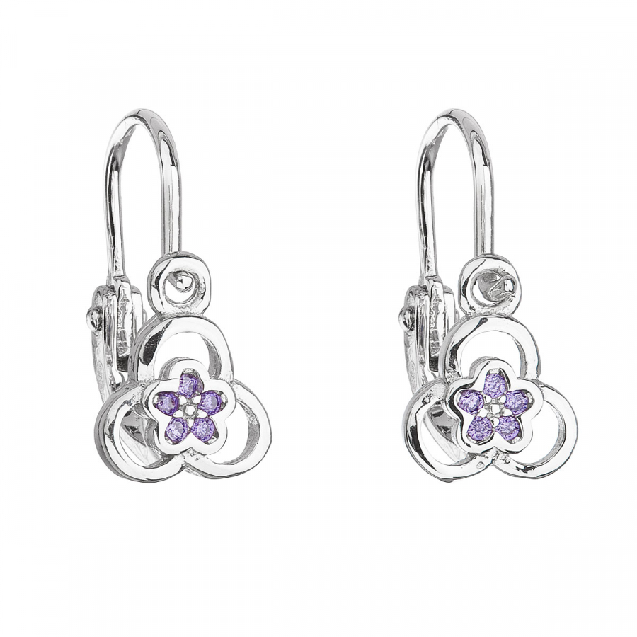 Strieborné detské náušnice visiace so zirkónom fialová kvietka 11171.3