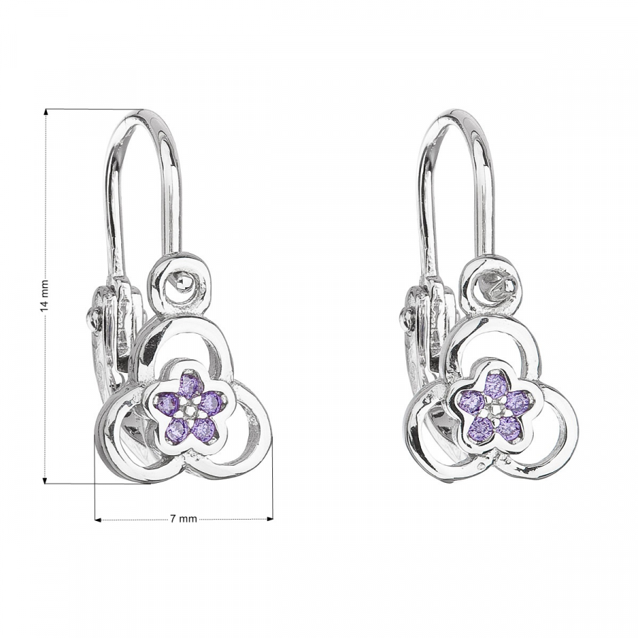 Parametre strieborných detských visiacich náušníc so zirkónom fialová kvietka 11171.3