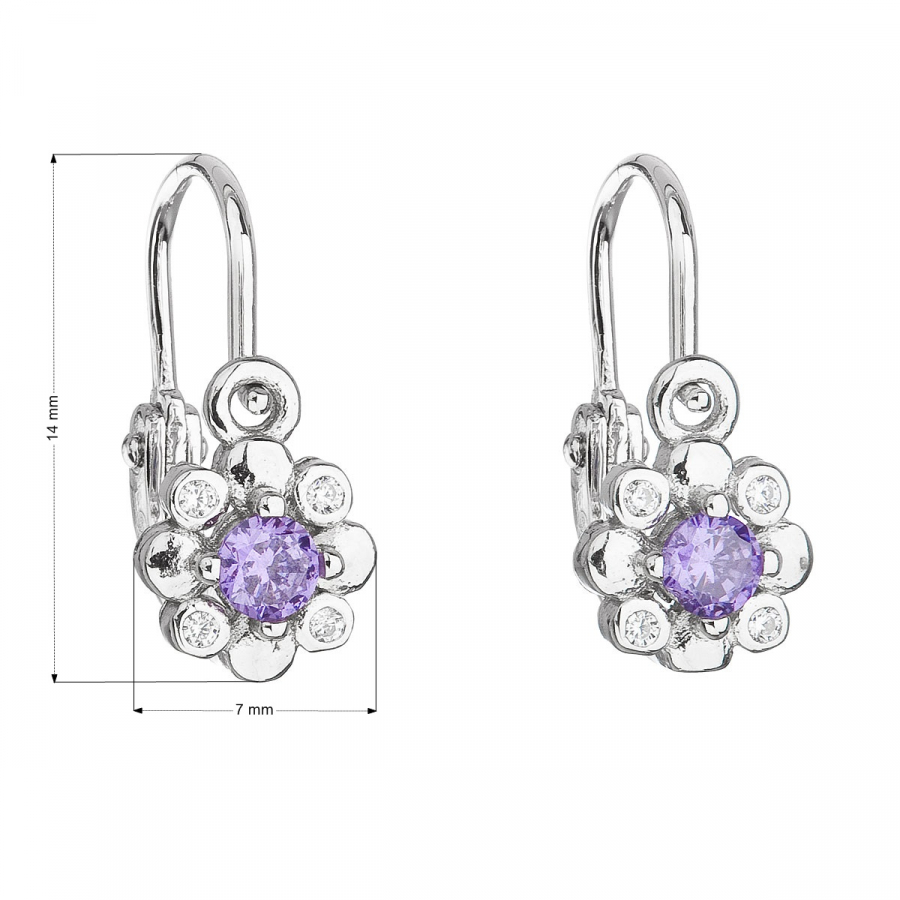 Parametre strieborných detských visiacich náušníc so zirkónom fialová kvietka 11174.3