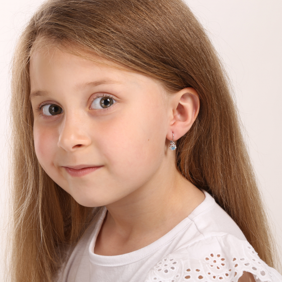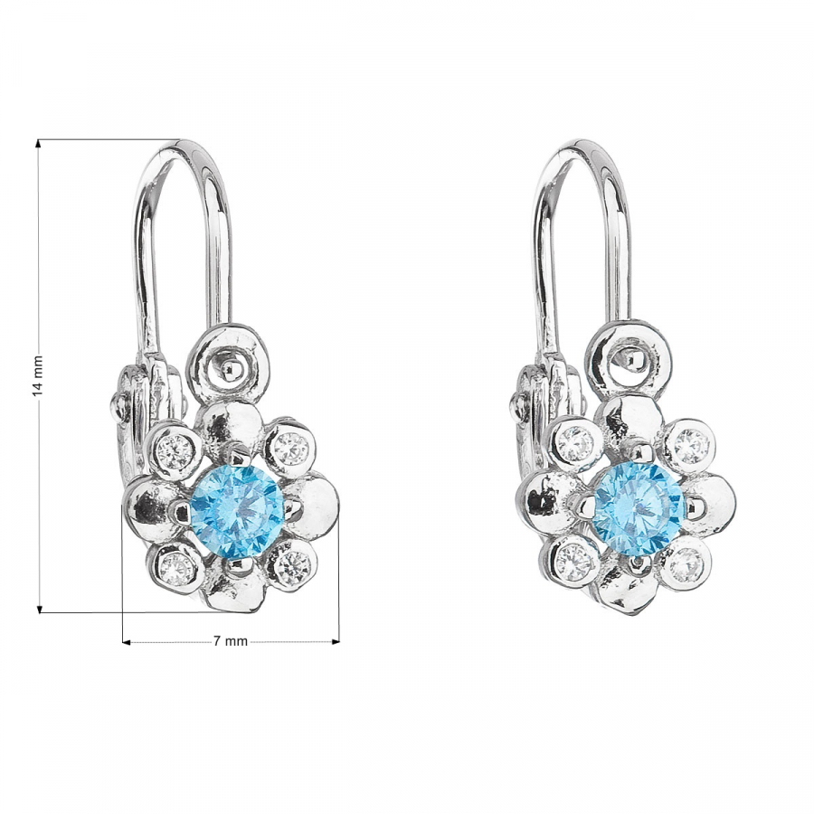 Parametre strieborných detských visiacich náušníc so zirkónom modrá kytička 11174.3