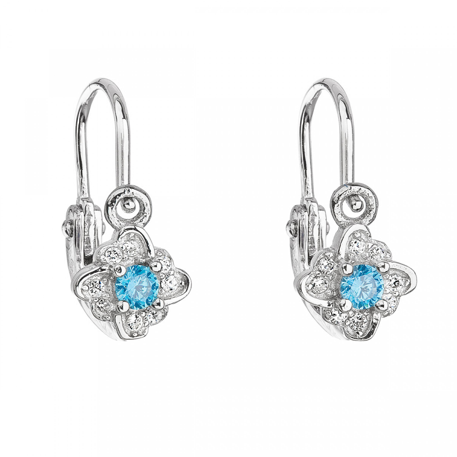 Strieborné detské náušnice visiace so zirkónom modrá kytička 11175.3