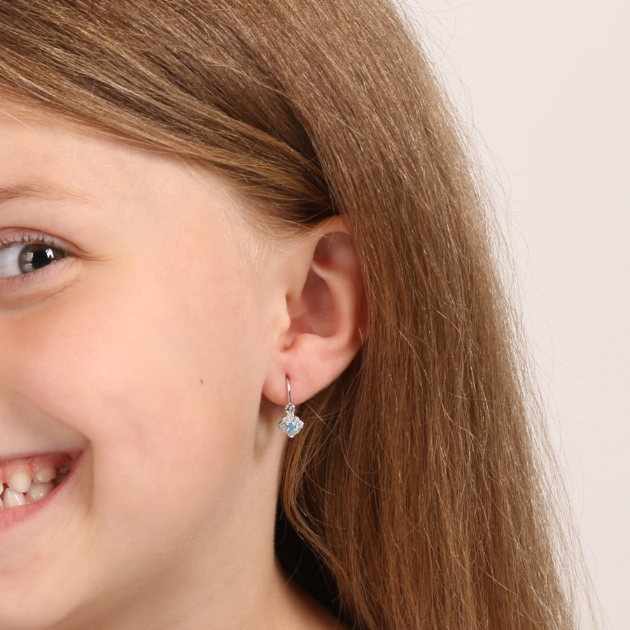 Parametre strieborných detských visiacich náušníc so zirkónom modrá kvietka 11175.3