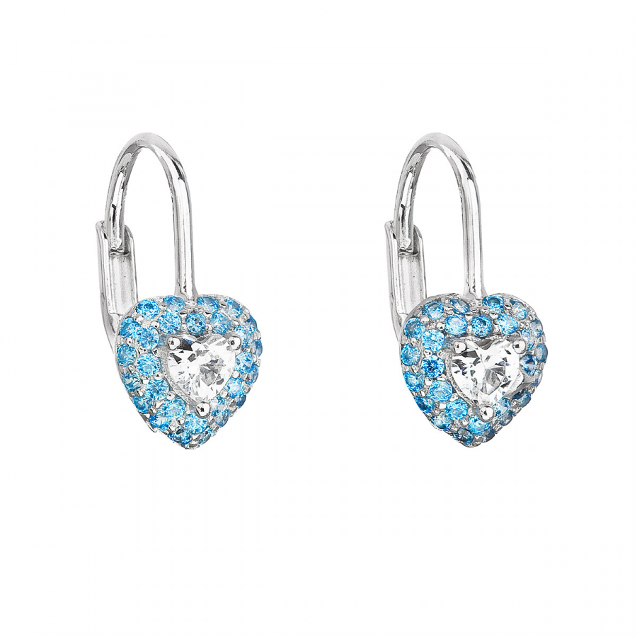Strieborné detské náušnice visiace so zirkónom modré srdce 11216.3