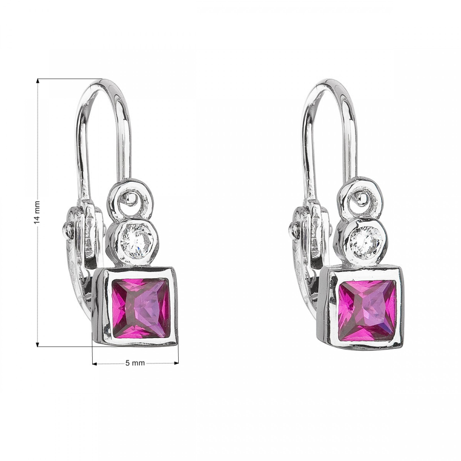 Parametre strieborných detských visiacich náušníc so zirkónom ružová kocka 11172.3