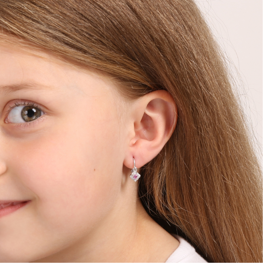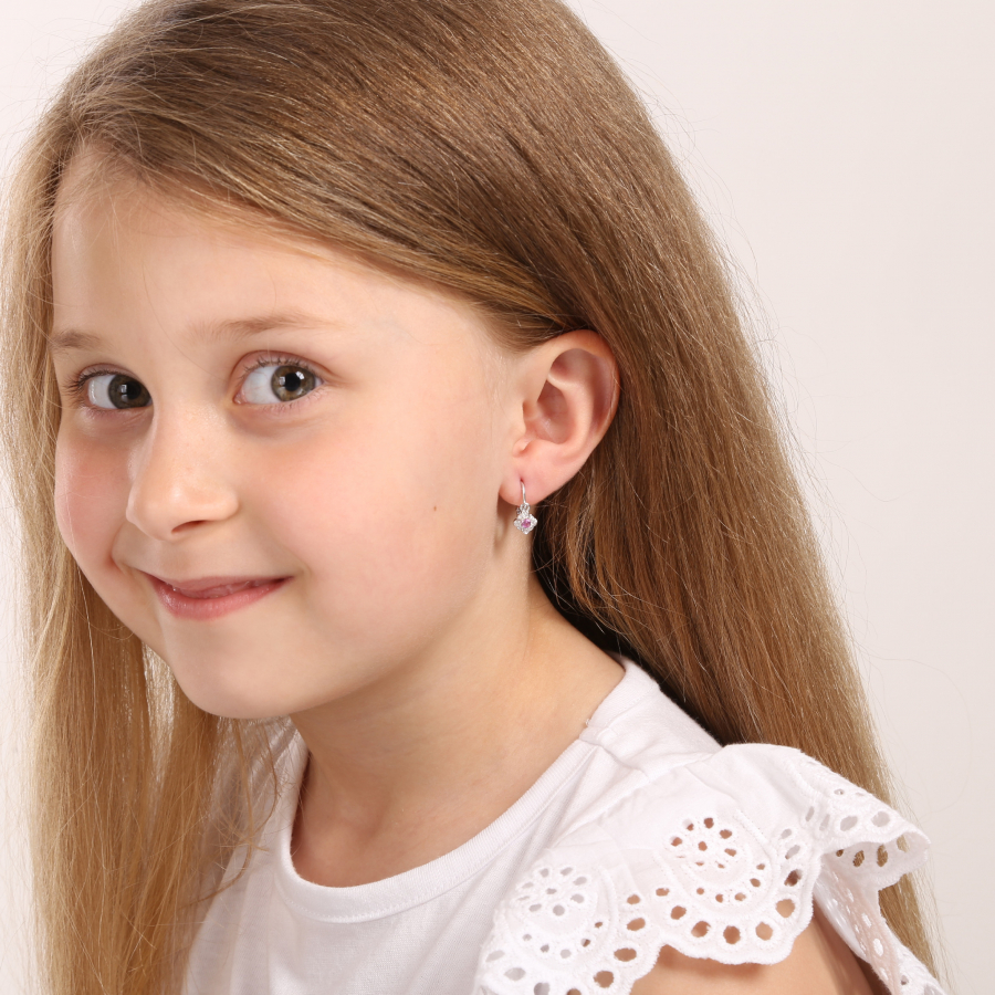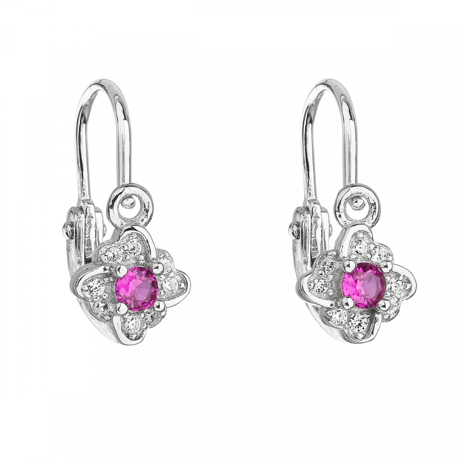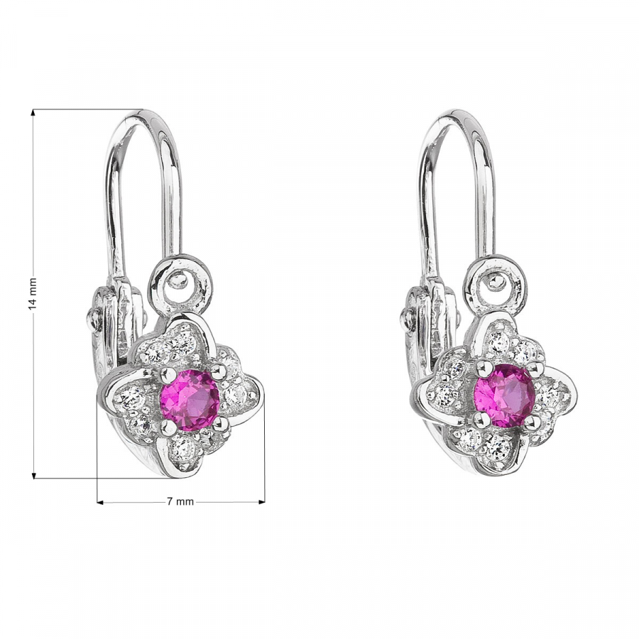 Parametre strieborných detských visiacich náušníc so zirkónom ružová kvietka 11175.3