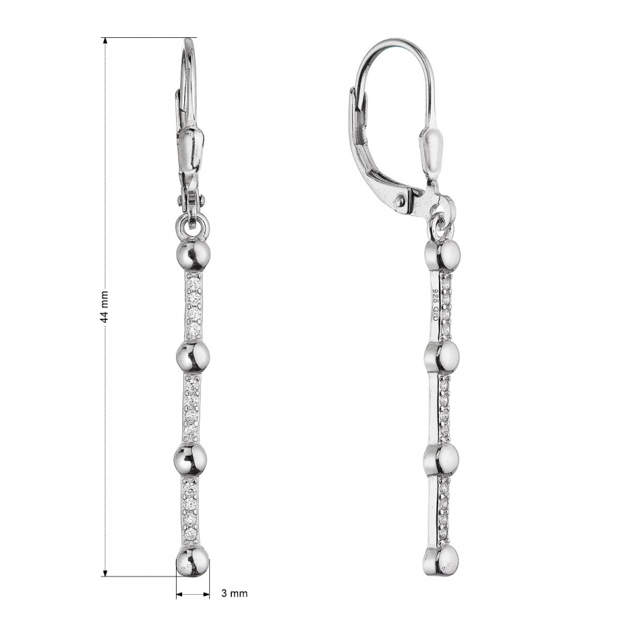 Netradičné elegantné visiace náušnice zo striebra okúzlia svojou dĺžkou. Dlhá štíhla tyčka zdobená trblietavými zirkónmi sa pri každom pohybe nádherne leskne, zatiaľ čo drobné strieborné guličky dodávajú náušniciam moderný a originálny vzhľad. Ľahkosť a vzdušnosť šperku podčiarkne vašu eleganciu pri každej príležitosti – či už na slávnostný večer, alebo ako štýlový doplnok k dennému outfitu. Perfektná voľba pre ženy, ktoré milujú jemné, ale neprehliadnuteľné šperky!