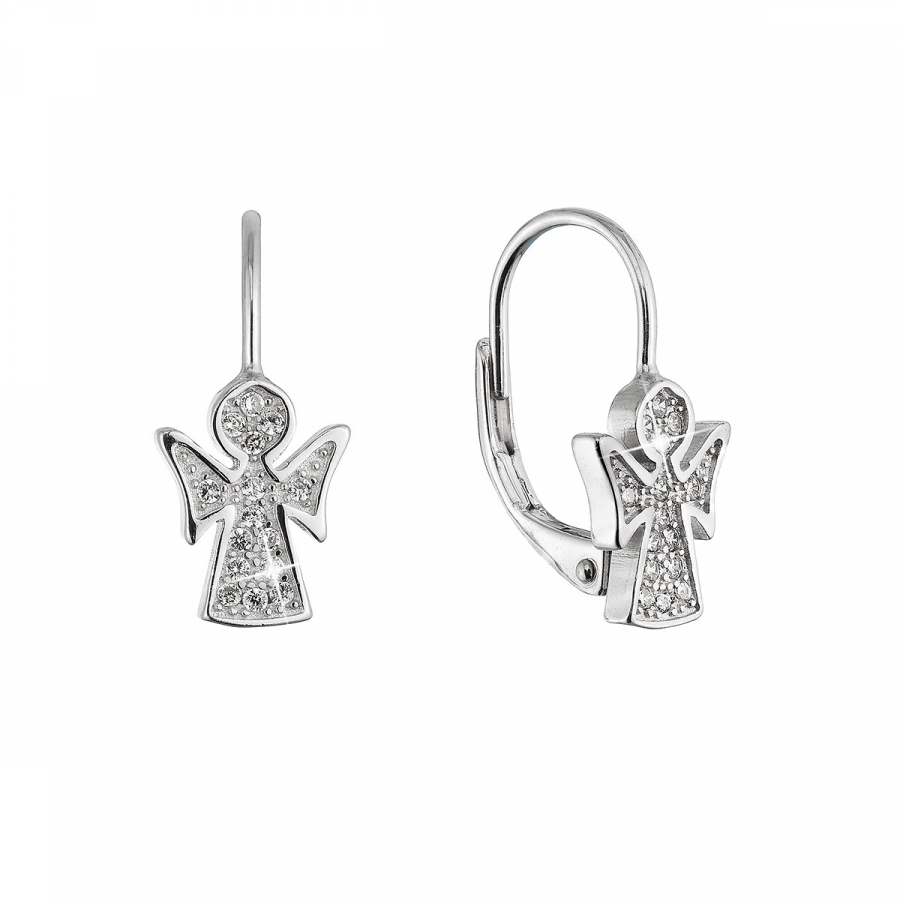 Strieborné náušnice anjel so zirkónmi 11543.1