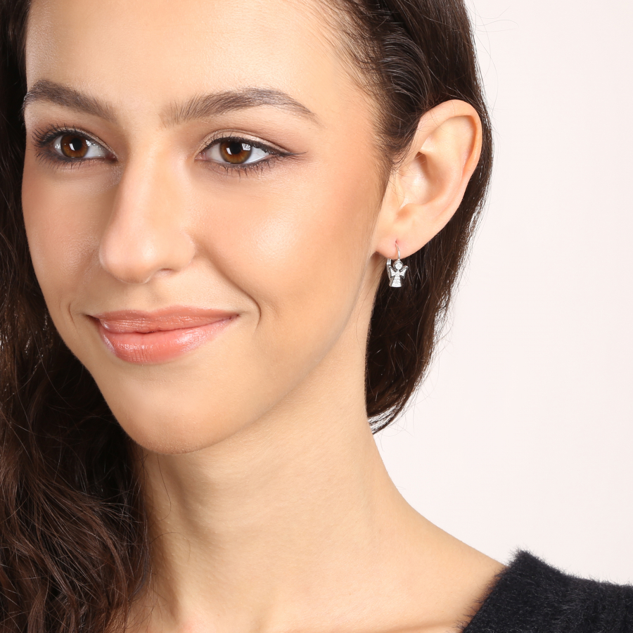 Strieborné náušnice zdobené zirkónmi s motívom anjelikov sú ako malí strážcovia, ktorí vás budú sprevádzať každým dňom.
