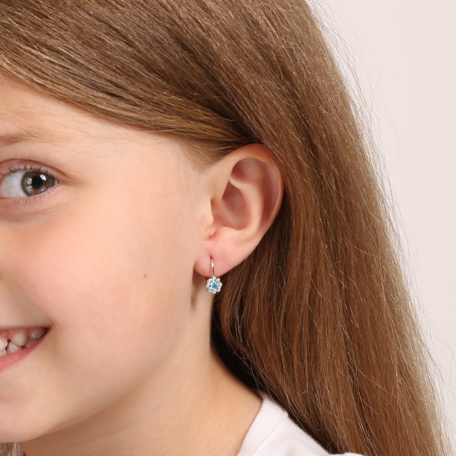 Strieborné náušnice detské kvietky so zirkónmi 11476.3 aqua