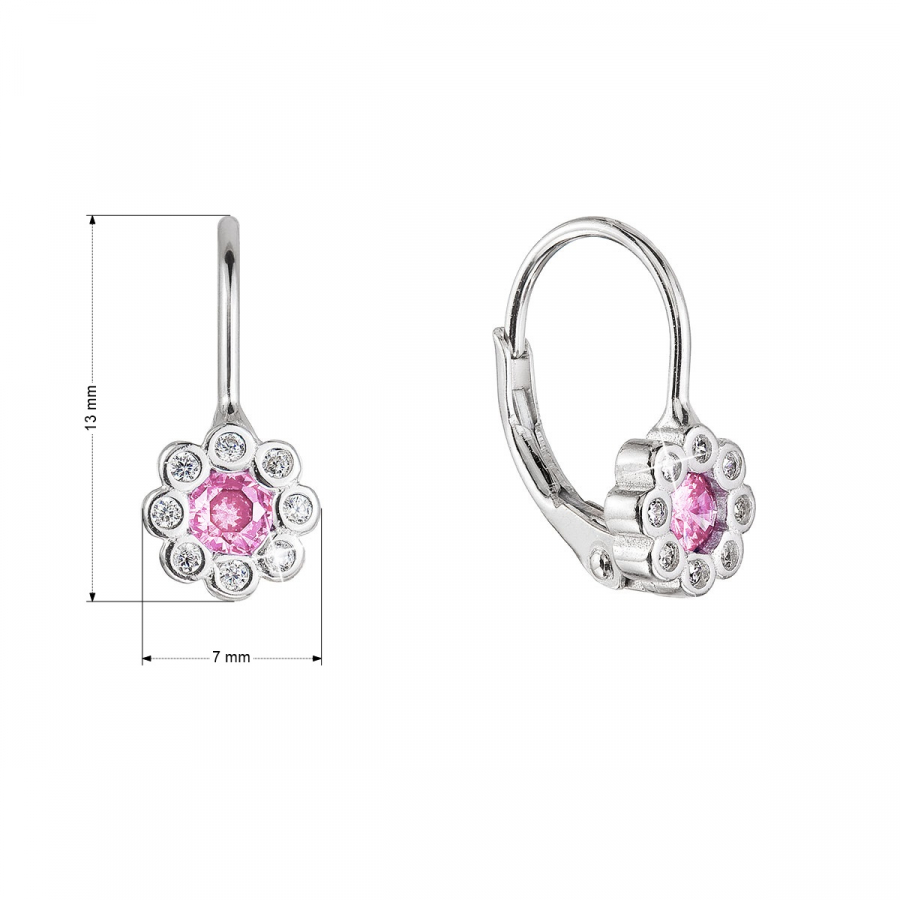 Strieborné náušnice detské kvietky so zirkónmi 11476.3 rose