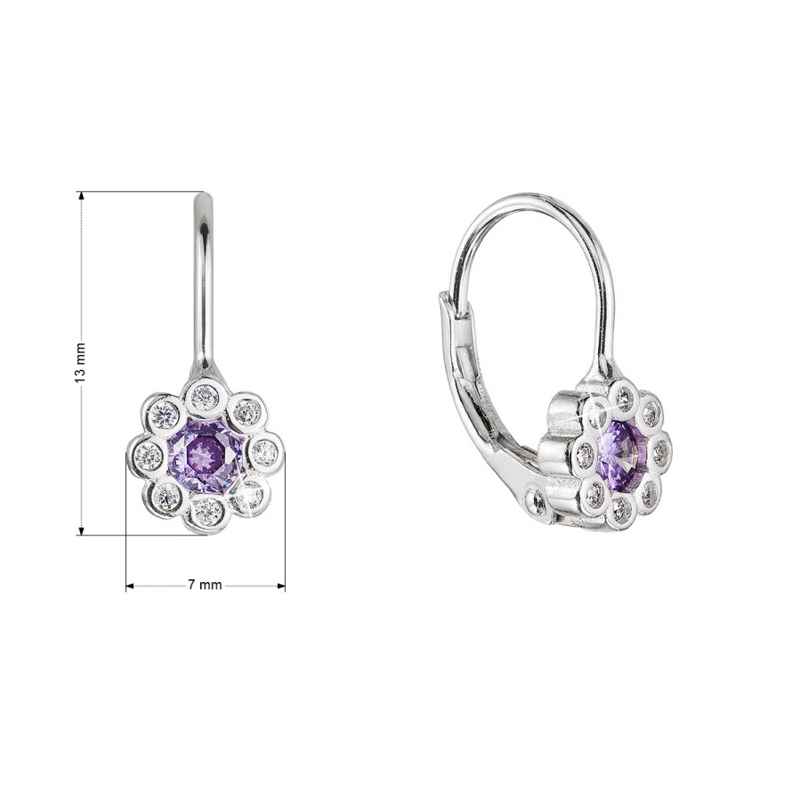 Strieborné náušnice detské kvietky so zirkónmi 11476.3 violet