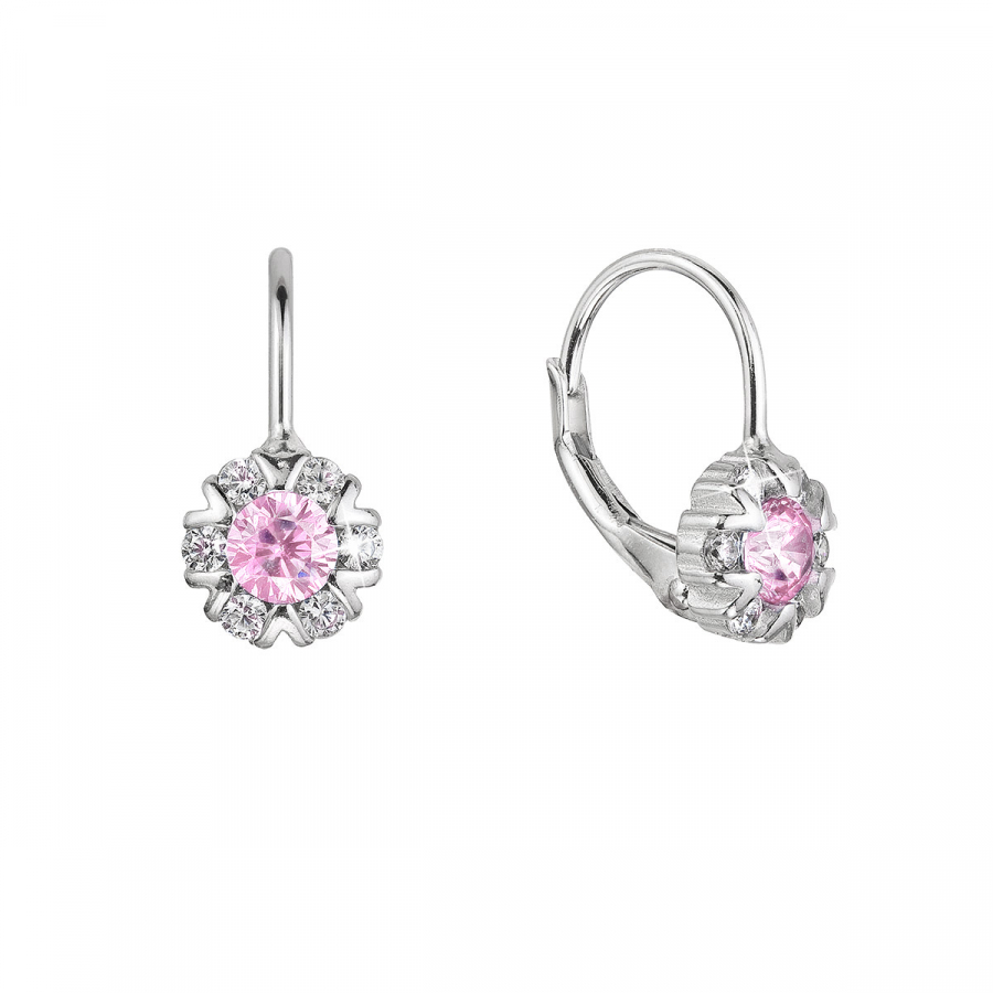 Strieborné náušnice detské okrúhle so zirkónmi 11474.3 rose