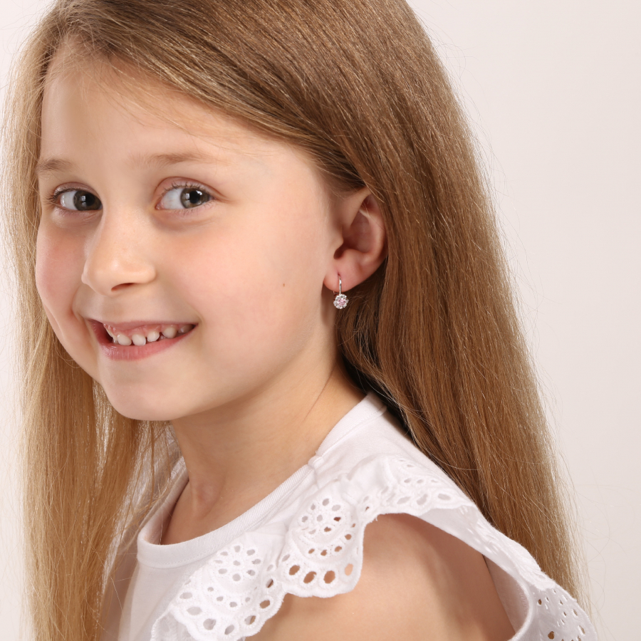 Zháňate roztomilé náušničky pre svoje malé dievčatko? Čo napríklad okrúhle visiace náušnice vysadené trblietavými zirkónmi.
