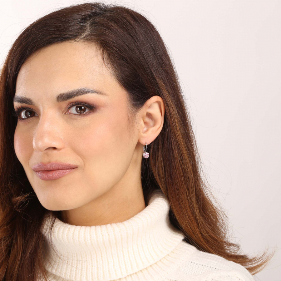 Visiace náušnice 11478.3 sú vyrobené zo striebra rýdzosti 925/1000 , ktorého povrch je upravený ródiom. Rhodium šperk ochráni proti sčernaniu, zožltnutiu alebo poškriabaniu. Dominantný je okrúhly ružový zirkón nad ktorým sú ďalšie malé biele zirkóny vďaka ktorým sa náušnice pekne trblietajú. Zapínanie je na klapku. Šperk neobsahuje nikel , a tak sa nemusíte obávať žiadne alergické reakcie. Priemer náušnice je 6 mm.