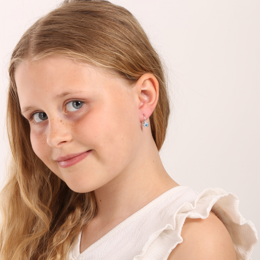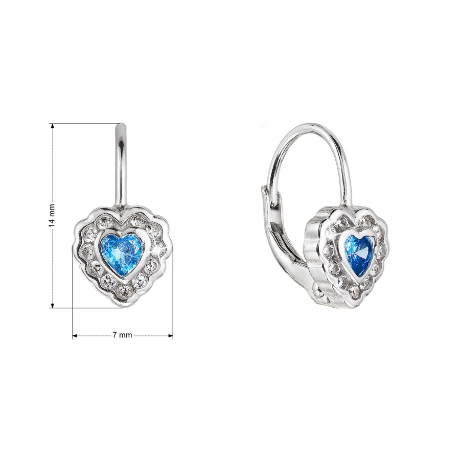 Strieborné náušnice detské srdiečka so zirkónmi 11473.3 aqua