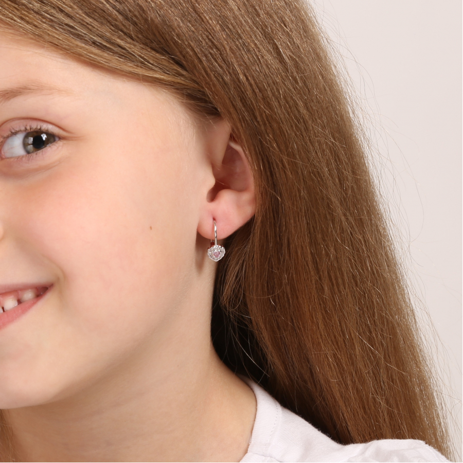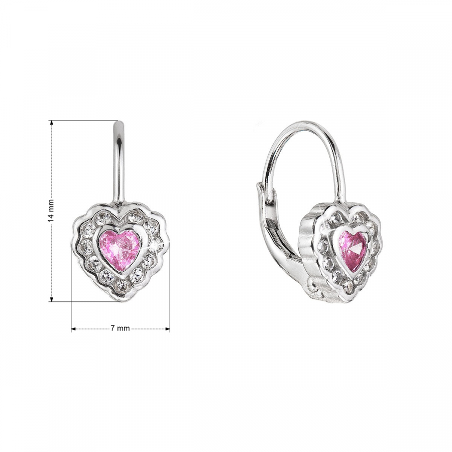 Strieborné náušnice detské srdiečka so zirkónmi 11473.3 rose