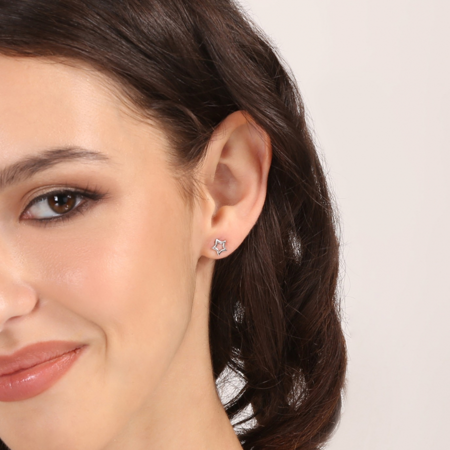 Tieto jednoduché strieborné náušnice v tvare jemných hviezdičiek sú tvorené iba obrysmi, čo im dodáva ľahkosť a vzdušnosť. Hviezdičky symbolizujú nádej a šťastie, sú skvelým doplnkom na každodenné nosenie.