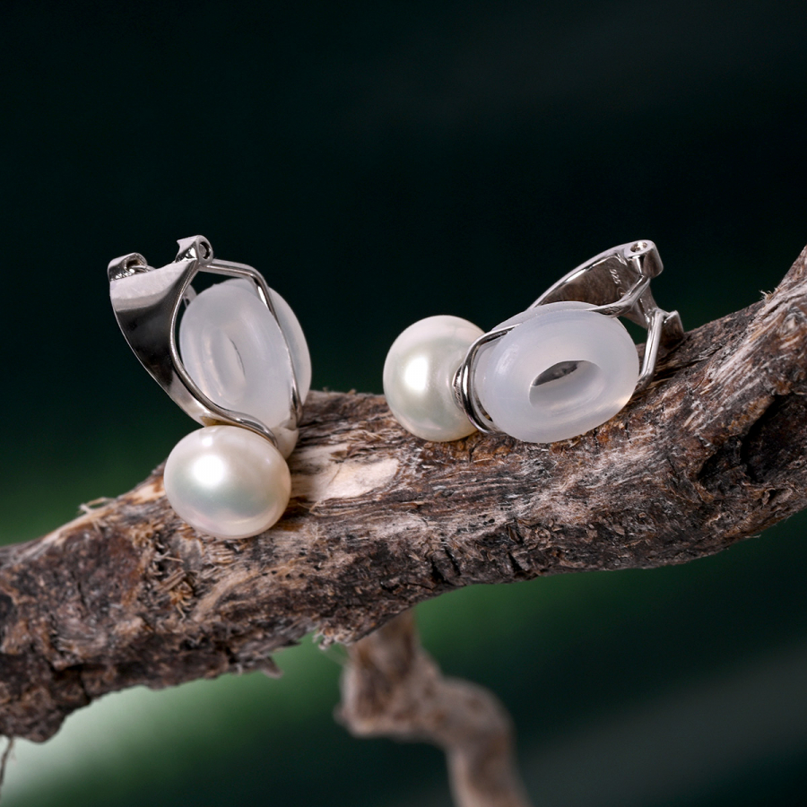 Strieborné náušnice klipsy s riečnou perlou 21081.1