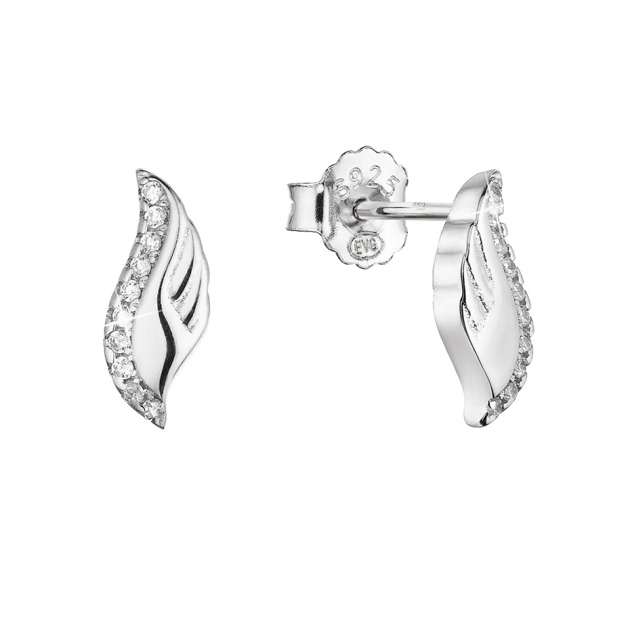 Strieborné náušnice kôstky anjelské krídla so zirkónmi 11416.1