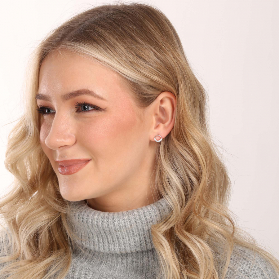 Jednoduché náušnice v tvare kosoštvorcov zdobené trblietavými zirkónmi sa hodia na každú príležitosť. Šperk je originálne zdobený, avšak veľkostne decentný , môžete ním doplniť ako elegantný, tak každodenný outfit.