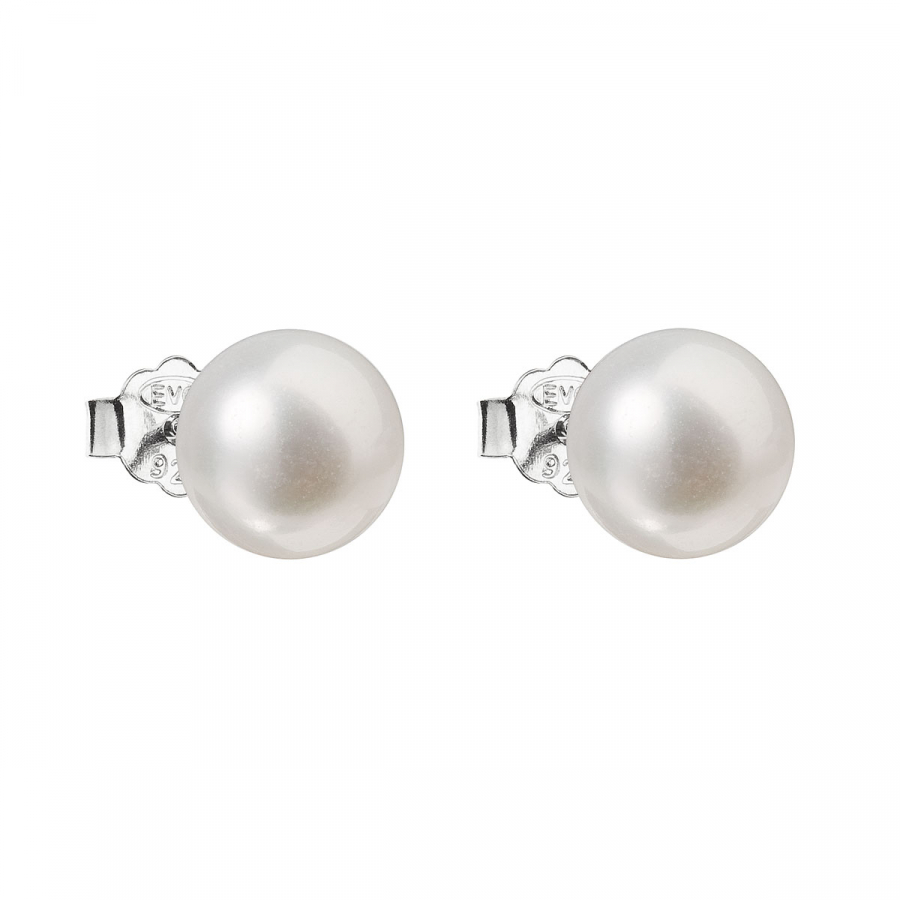 Strieborné náušnice kôstky s bielou riečnou perlou 21043.1
