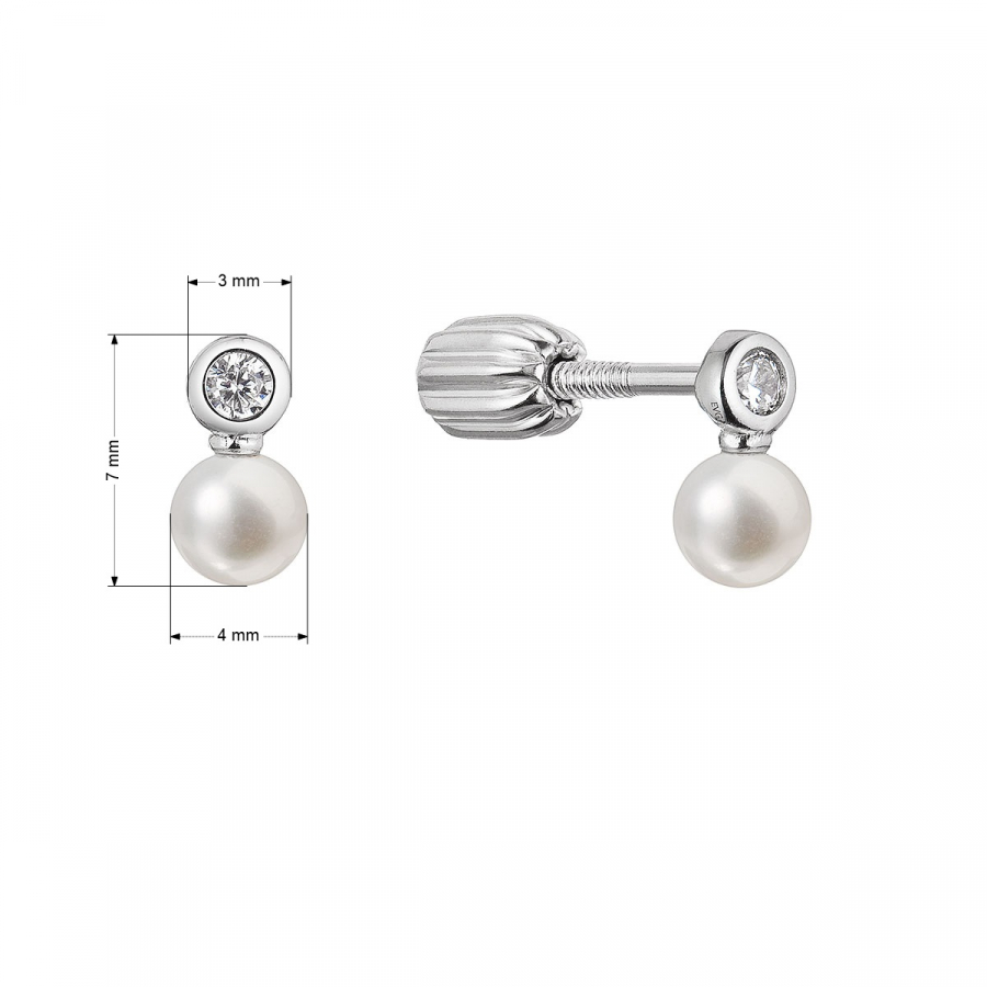 Náušnice 21088.1B sú vyrobené zo striebra o rýdzosti 925/1000 vrátane povrchovej úpravy ródiom. Ródium ochráni šperk proti sčerneniu, zožltnutiu i poškriabaniu. Veľkosť perly je 4 mm a kvalita AA . Náušnice sú zdobené priezračnými zirkónmi, ktoré ich krásne rozžiaria. Šperk neobsahuje prídavok niklu, a tak ho môžu nosiť aj ľudia náchylní na alergické reakcie. Náušnice majú zapínanie na balónik , ktorý ich ochráni proti nechcenej strate.